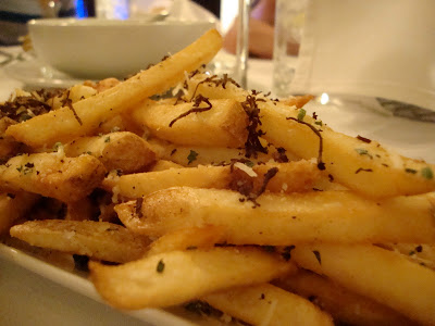 The fries were even better than the green beans. Tossed with truffle oil, herbs and shredded Parmesan, when they first hit the table they smelled wonderful and were warm and slightly crisp. As they cooled, they lost a bit of their deliciousness, but they were still some of the best fries I have had in a long time. We used the saffron aioli (that accompanied the green beans) liberally with the fries.